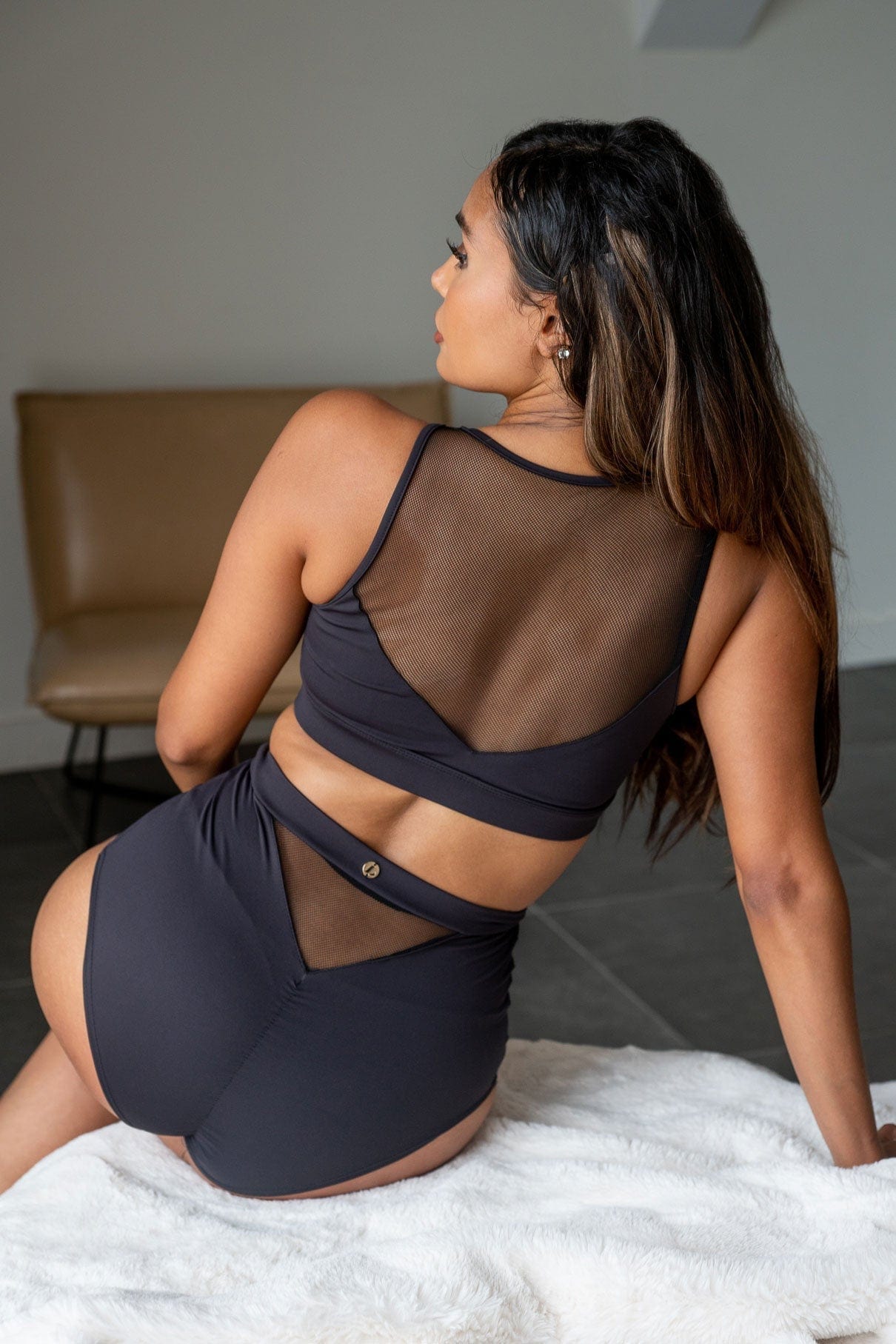 The Addison Mesh Top mixes functionality and sexiness, with a halter neck design for high bust support! It's perfect to be worn to pole class or the gym. You'll be the star of the show when you pair it with the Addison Mesh Bottoms.