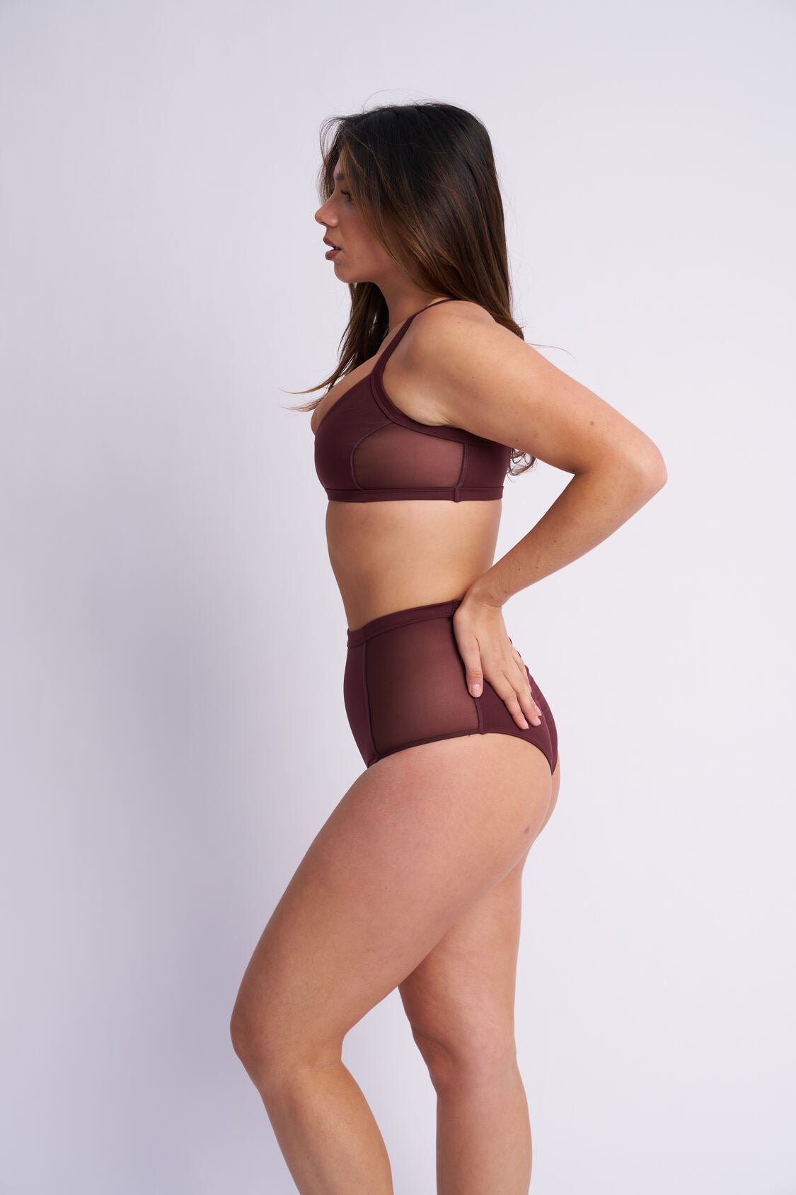 With subtle sheer mesh panels along the sides, the Gigi top flaunts a perfect balance between classic simplicity and daring edge.